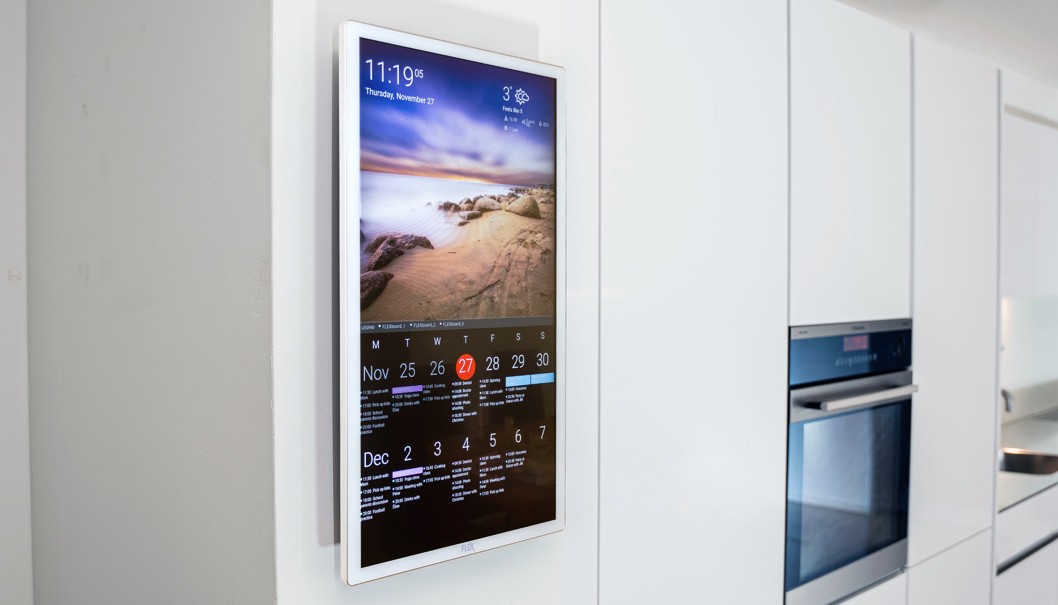 Flexboard is a wall-mounted touchscreen digital dashboard that brings your family’s life into one beautiful, central view.